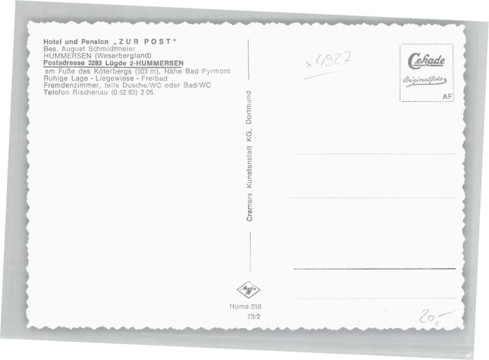 40685966 Hummersen Gasthaus Pension zur Post KatCode 11110005766052