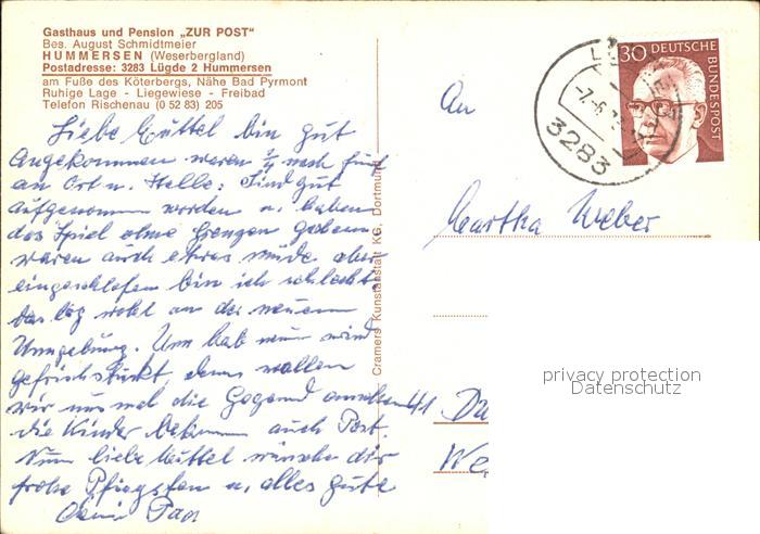 alte Postkarte Hummersen Gasthaus Pension Zur Post postalisch gelaufen Erhaltung siehe scans