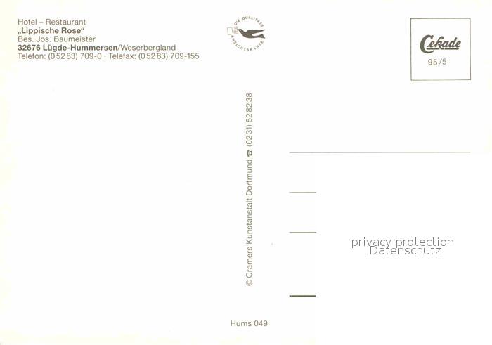 72618108 Hummersen Hotel Lippische Rose postalisch nicht gelaufen Erhaltung siehe scans [NatalD47] KatCode: 11110005766052