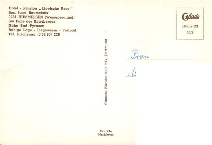 73921970 Hummersen Hotel Pension Lippische Rose am Fusse des Koeterberges postalisch nicht gelaufen Erhaltung siehe scans [WerneD78] KatCode: 11110005766052