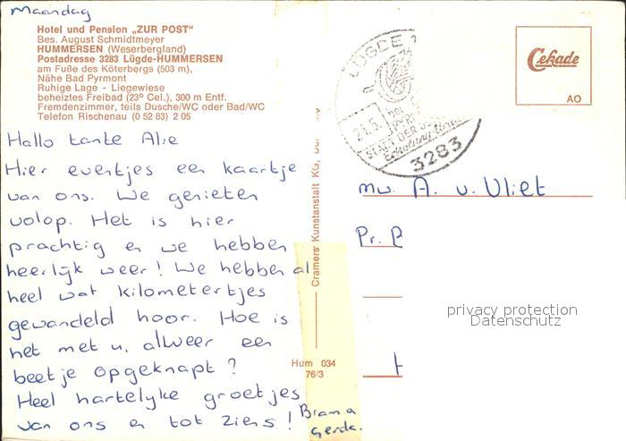 72314453 alte Postkarte Hummersen Hotel Pension Zur Post postalisch gelaufen Erhaltung siehe scans KatCode: 11110005766052