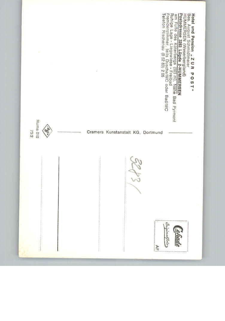 31125383 Hummersen Hotel – Pension Zur Post postalisch nicht gelaufen KatCode: 11110005766052