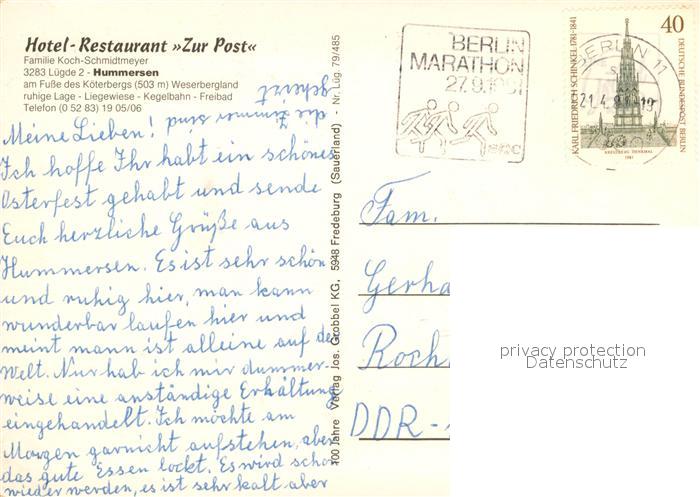 73718917 alte Postkarte Hummersen Hotel Restaurant Zur Post postalisch gelaufen Erhaltung siehe scans [WerneD78] KatCode: 11110005766052