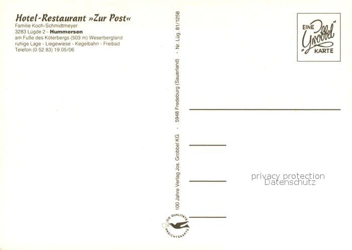 73723224 Hummersen Hotel Restaurant Zur Post Bar Gastraeume postalisch nicht gelaufen Erhaltung siehe scans [WerneD78] KatCode: 11110005766052