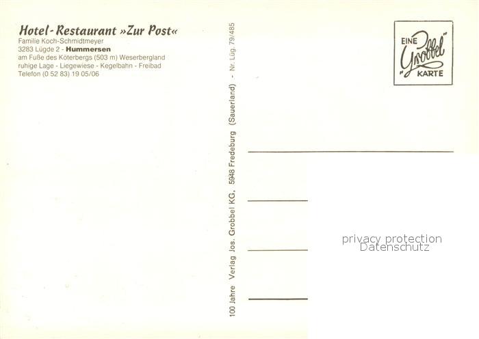 73723223 Hummersen Hotel Restaurant Zur Post postalisch nicht gelaufen Erhaltung siehe scans [WerneD78] KatCode: 11110005766052