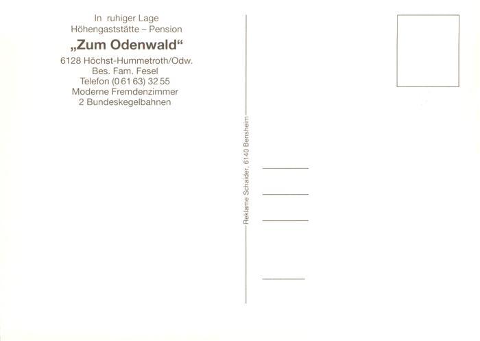 73884331 Hummetroth Odenwald Hoehengaststaette Pension Zum Odenwald Gastraeume Zimmer Kegelbahn postalisch nicht gelaufen Erhaltung siehe scans [FriedD77] KatCode: 11110006437009