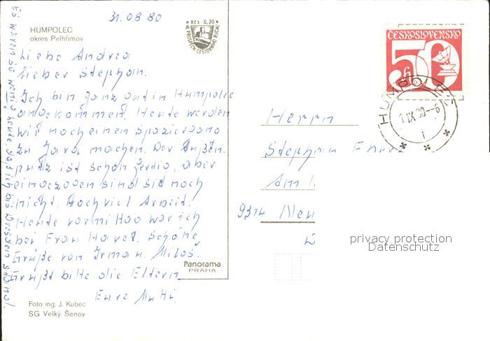 old postcard Humpolec Okres Pelhrimov postalisch gelaufen Erhaltung siehe scans
