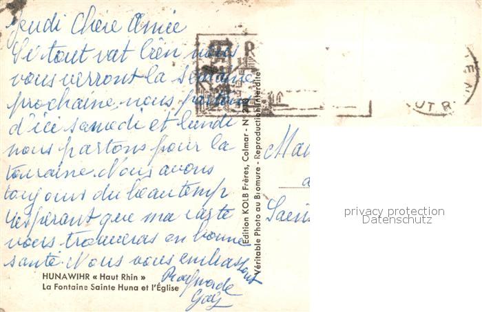 13608212 carte postale Hunawihr Hunaweier Fontaine Sainte Huna et l’Eglise postalisch gelaufen Erhaltung siehe scans [FriedD77] KatCode: 11170068568147