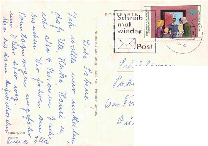 74012537 alte Postkarte Hunde dogs chiens Silberpudel Halskette postalisch gelaufen Erhaltung siehe scans [SanaeD93] KatCode: 22540000002400