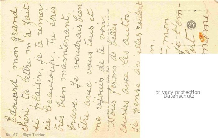 HUNDE dogs chiens– Skye Terrier No 67 Litho postalisch nicht gelaufen Erhaltung siehe scans [SanaeD93] Sana Katcode 22540000002400
