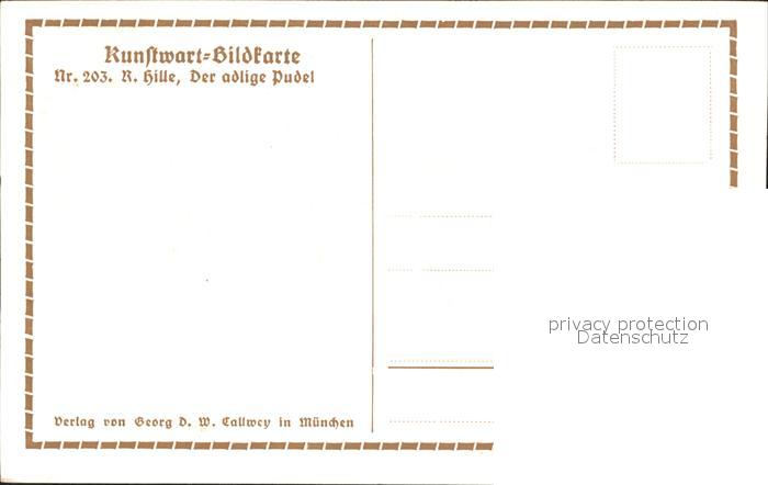 Hunde Kuenstlerkarte R. Hille Der adlige Pudel Kunstwart-Bildkarte Nr. 203 postalisch nicht gelaufen Erhaltung siehe scans
