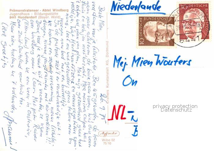 72859716 alte Postkarte Hunderdorf Niederbayern Jugendhaus Bildungsstaette Windberg postalisch gelaufen Erhaltung siehe scans [NatalD47] KatCode: 11110009278139