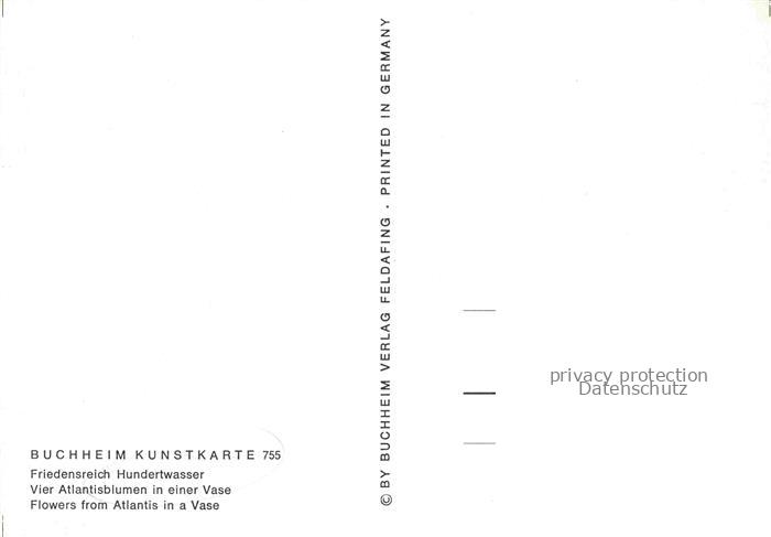 74091783 HUNDERTWAssER Friedrich Kuenstlerkarte Vier Atlantisblumen in einer Vase postalisch nicht gelaufen Erhaltung siehe scans [SanaeD93] KatCode: 22240000003200