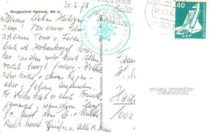 73653398 alte Postkarte Hundham Miesbach Berggasthof Hocheck postalisch gelaufen Erhaltung siehe scans [WerneD78] KatCode: 11110009182114