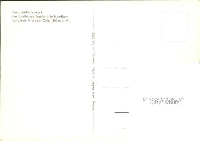 72051854 Hundham Miesbach Familien Ferienwerk Erzdioezese Bamberg postalisch nicht gelaufen Erhaltung siehe scans KatCode: 11110009182114