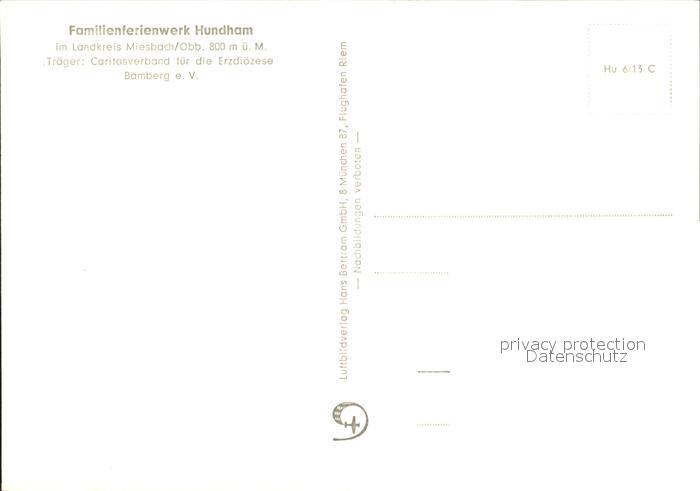 72283110 Hundham Miesbach Fliegeraufnahme Familienferienwerk postalisch nicht gelaufen Erhaltung siehe scans KatCode: 11110009182114