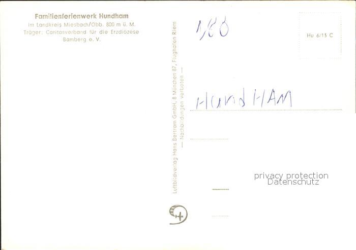 72283111 Hundham Miesbach Fliegeraufnahme Familienferienwerk postalisch nicht gelaufen Erhaltung siehe scans KatCode: 11110009182114