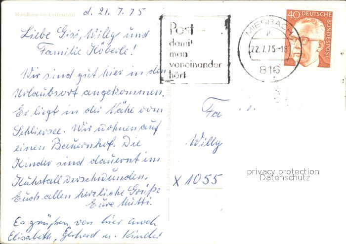 72032844 alte Postkarte Hundham Miesbach Panorama Leitzachtal postalisch gelaufen Erhaltung siehe scans KatCode: 11110009182114