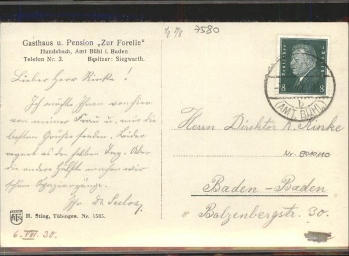 70959467 alte Postkarte Hundsbach Forbach postalisch gelaufen KatCode: 11110008216013