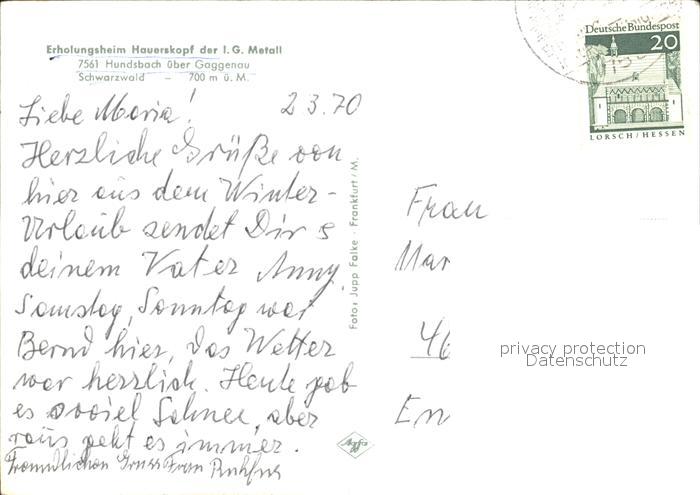 72174991 alte Postkarte Hundsbach Forbach Erholungsheim Hauerskopf postalisch gelaufen Erhaltung siehe scans KatCode: 11110008216013