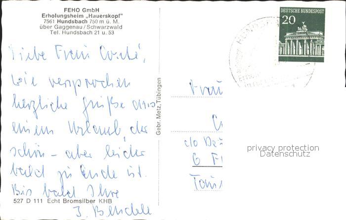 72098287 alte Postkarte Hundsbach Forbach Ferienheim Hauerskopf postalisch gelaufen Erhaltung siehe scans KatCode: 11110008216013