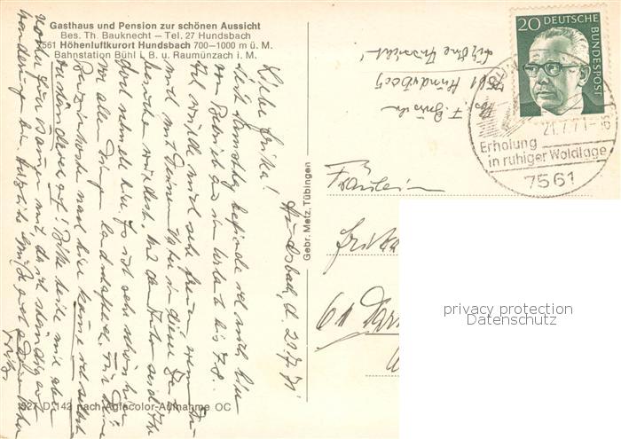 73765957 alte Postkarte Hundsbach Forbach Gasthaus Pension zur schoenen Aussicht Fliegeraufnahme postalisch gelaufen Erhaltung siehe scans [FriedD77] KatCode: 11110008216013