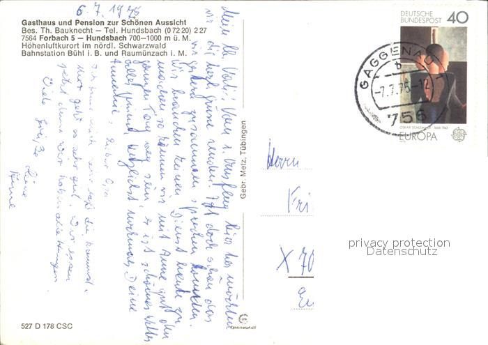 alte Postkarte Hundsbach Forbach Gasthaus zur Schoenen Aussicht Brunnen postalisch gelaufen Erhaltung siehe scans