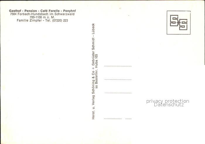 71938811 Hundsbach Forbach Gasthof Pension Cafe Forelle Brunnen Ponys Kirche Schwarzwald postalisch nicht gelaufen Erhaltung siehe scans KatCode: 11110008216013