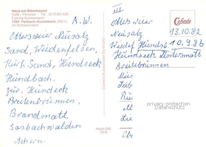 73321197 Hundsbach Forbach Haus am Biberkessel Cafe Pension Schwarzwald postalisch nicht gelaufen Erhaltung siehe scans [FriedD77] KatCode: 11110008216013