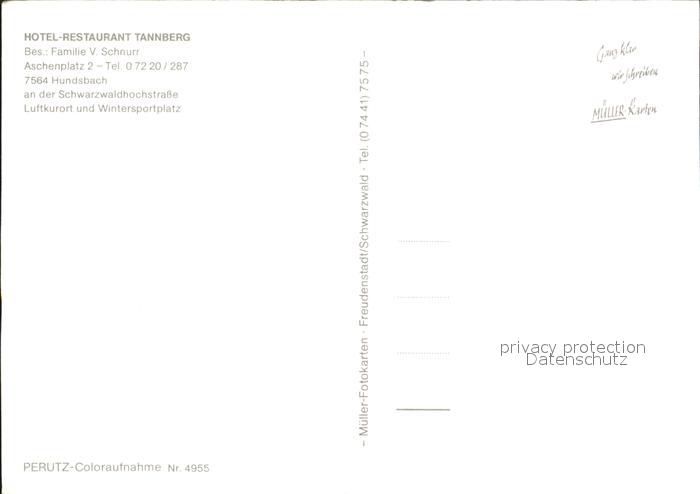 72269502 Hundsbach Forbach Hotel Restaurant Tannberg Schwarzwaldhochstrasse postalisch nicht gelaufen Erhaltung siehe scans KatCode: 11110008216013