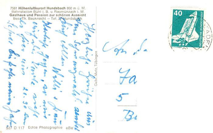 73902446 alte Postkarte Hundsbach Forbach Schwarzwald Gasthaus Pension zur schoenen Aussicht postalisch gelaufen Erhaltung siehe scans [FriedD77] KatCode: 11110008216013