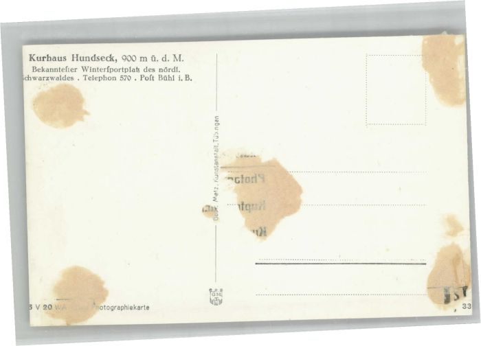 40766629 Hundseck 900m Buehl BW postalisch nicht gelaufen Alte Ansichtskarte Postkarte Katcode 11110008216007
