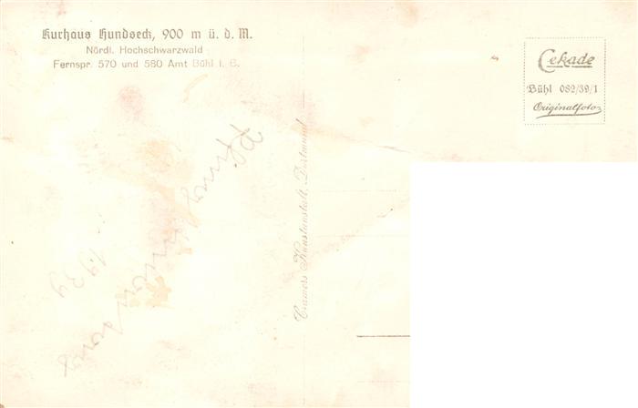 73902442 Hundseck Buehl Kurhaus Panorama postalisch nicht gelaufen Erhaltung siehe scans [FriedD77] KatCode: 11110008216007