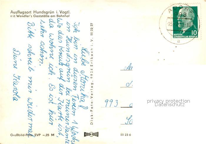 73108753 alte Postkarte Hundsgruen Panorama mit Wendlers Gaststaette am Bahnhof postalisch gelaufen Erhaltung siehe scans [WerneD78] KatCode: 11110014178130