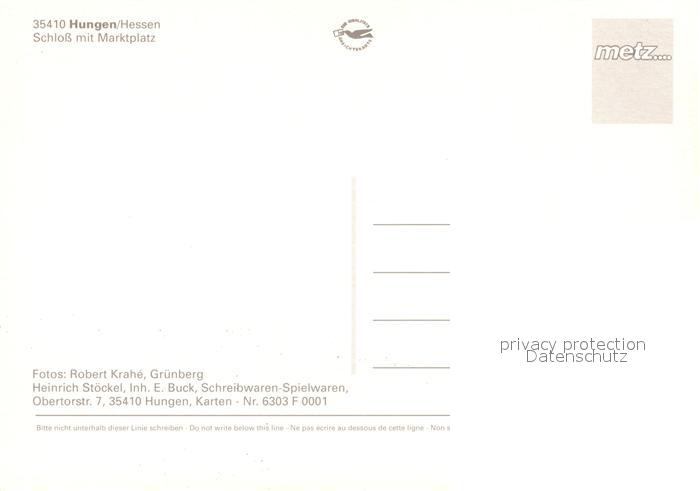 73207954 Hungen Schloss Marktplatz postalisch nicht gelaufen Erhaltung siehe scans [KathaD81] KatCode: 11110006531008