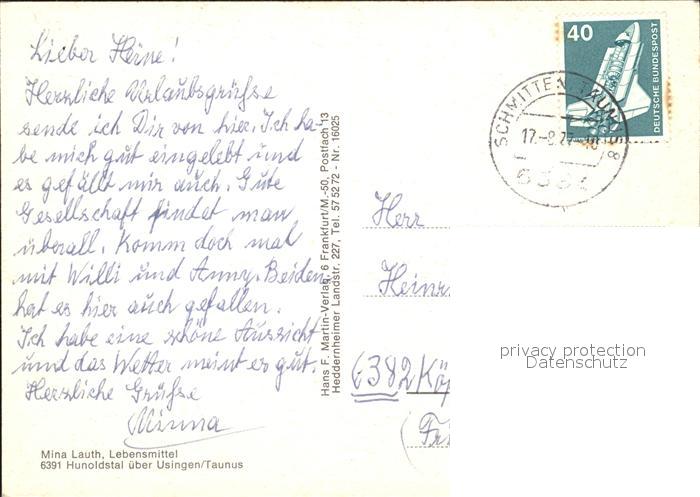 72098808 alte Postkarte Hunoldstal Gesamtansicht Weiltal Buergerhaus Feldbergblick postalisch gelaufen Erhaltung siehe scans KatCode: 11110006434009