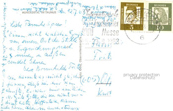 73243388 alte Postkarte Hunoldstal im Taunus postalisch gelaufen Erhaltung siehe scans [LiesaD40] KatCode: 11110006434009