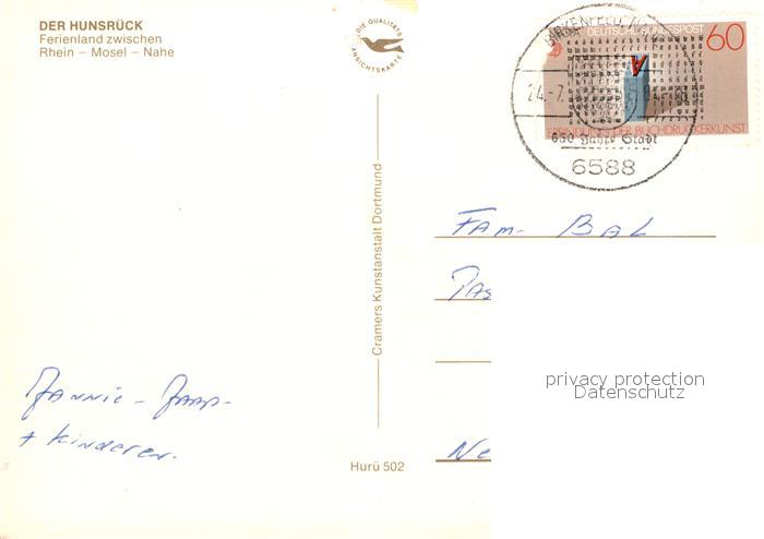 72943843 alte Postkarte Hunsrueck Landschaftspanorama Hunsrueckhoehen Ruine Baldenau Wildenburg Sauerbrunnen Turm Ferienpark postalisch gelaufen Erhaltung siehe scans [FriedD77] KatCode: