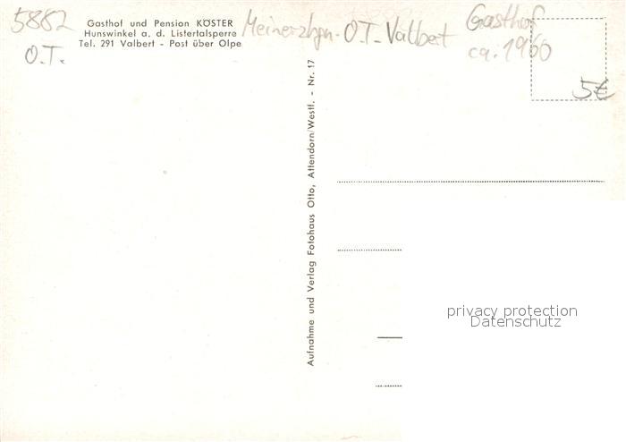 73709736 Hunswinkel Gasthof Pension Koester postalisch nicht gelaufen Erhaltung siehe scans [WerneD78] KatCode: 11110005962036