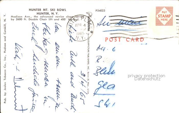 11686318 old postcard Hunter New York Skigebiet Ski Bowl postalisch gelaufen Erhaltung siehe scans KatCode: 14140340000000