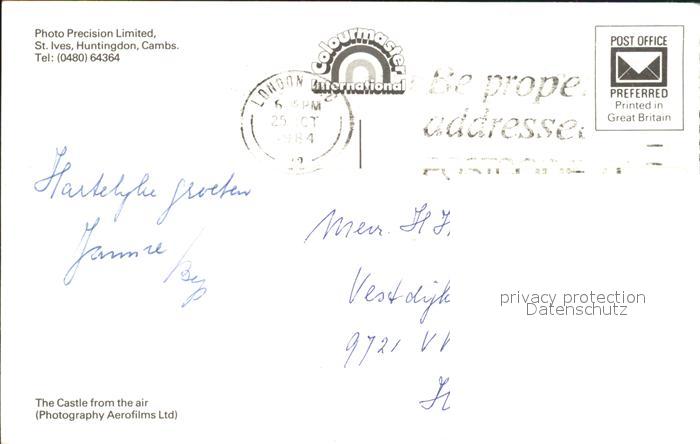 old postcard Huntingdon Huntingdonshire Fliegeraufnahme St. Ives postalisch gelaufen Erhaltung siehe scans