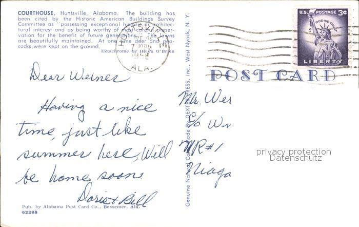 72311306 old postcard Huntsville Alabama Courthouse postalisch gelaufen Erhaltung siehe scans KatCode: 14140010000000
