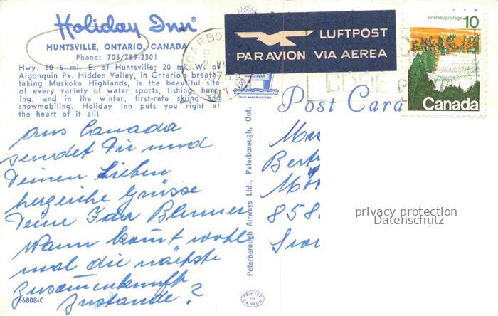 74118033 old postcard Huntsville Ontario Canada Holiday Inn postalisch gelaufen Erhaltung siehe scans [WerneD78] KatCode: 14110