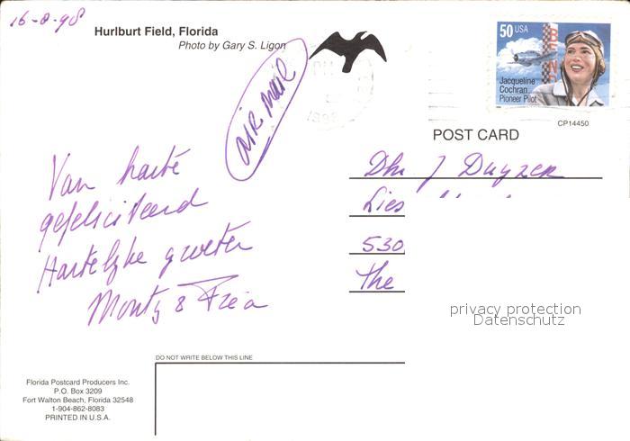 72609626 old postcard Hurlburt Field Fliegeraufnahme postalisch gelaufen Erhaltung siehe scans [LiesaD40] KatCode: 14140110000000
