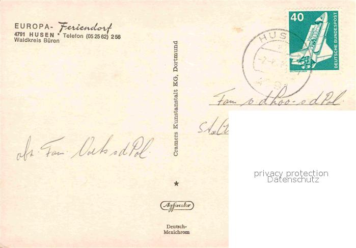 72865032 alte Postkarte Husen Bueren Europa Feriendorf postalisch gelaufen Erhaltung siehe scans [LiesaD40] KatCode: 11110005774028