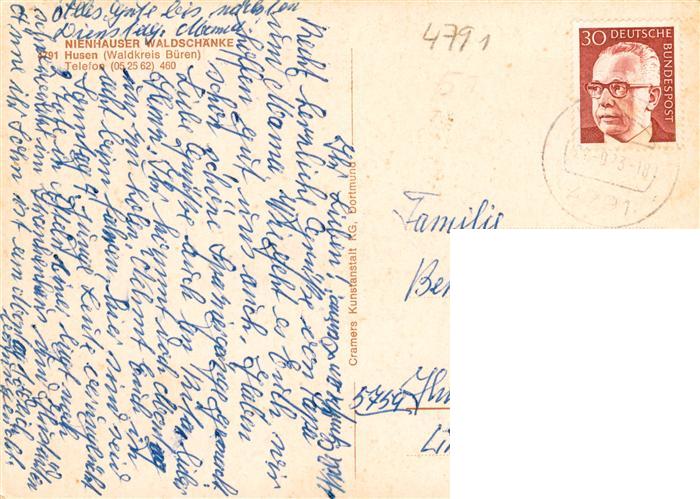 73872825 alte Postkarte Husen Bueren Ortsansicht Nienhauser Waldschaenke postalisch gelaufen Erhaltung siehe scans [WerneD78] KatCode: 11110005774028