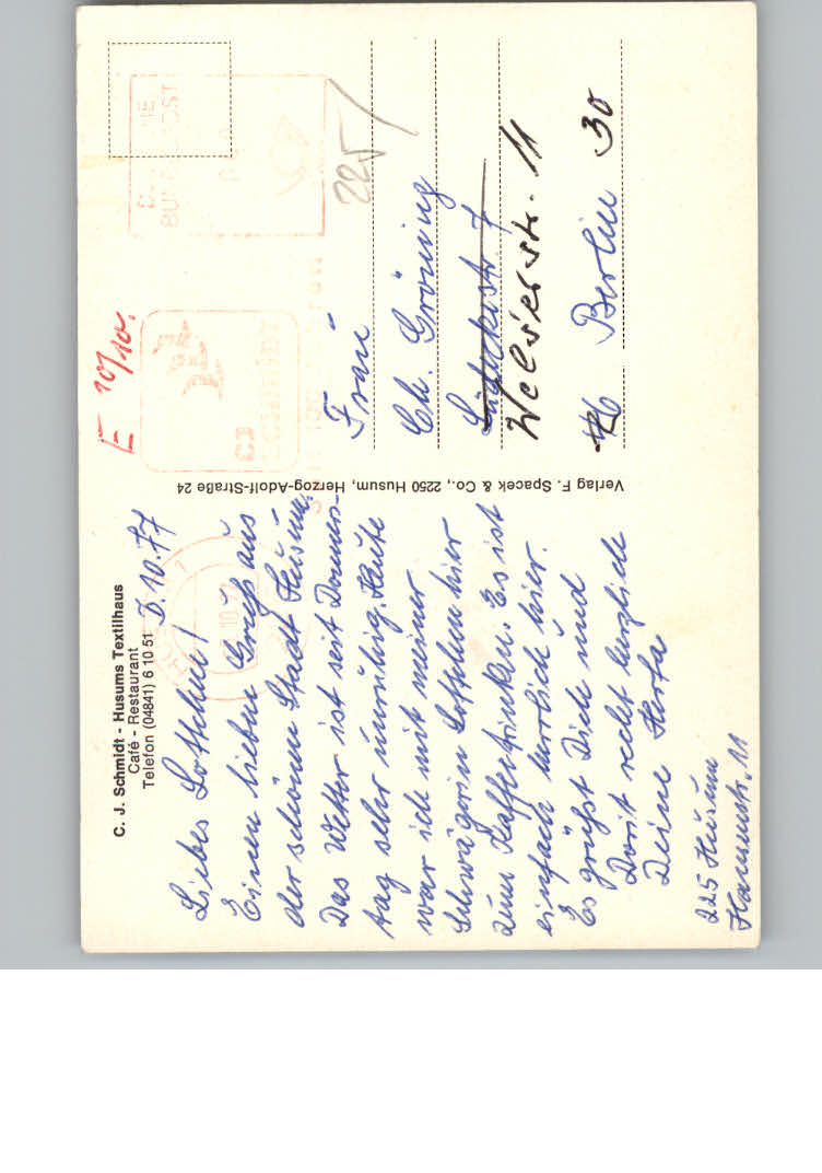 31118286 Husum Nordfriesland postalisch nicht gelaufen KatCode: 11110001054056
