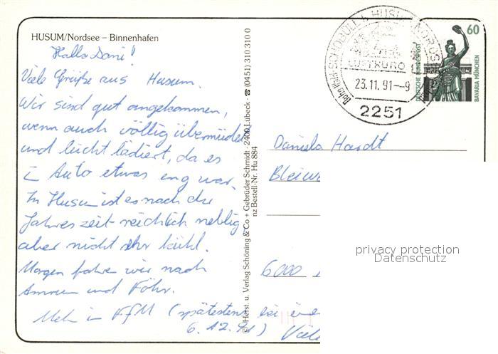 73070176 alte Postkarte Husum Nordfriesland Binnenhafen postalisch gelaufen Erhaltung siehe scans [FriedD77] KatCode: 11110001054056
