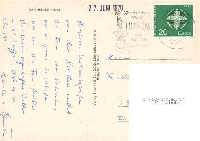 73833701 alte Postkarte Husum Nordfriesland Fischkutter Panorama Ortspartie MS Sylt postalisch gelaufen Erhaltung siehe scans [FriedD77] KatCode: 11110001054056