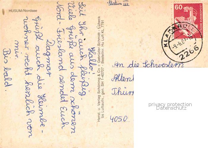 72656776 alte Postkarte Husum Nordfriesland Fliegeraufnahme postalisch gelaufen Erhaltung siehe scans [AndreD76] KatCode: 11110001054056